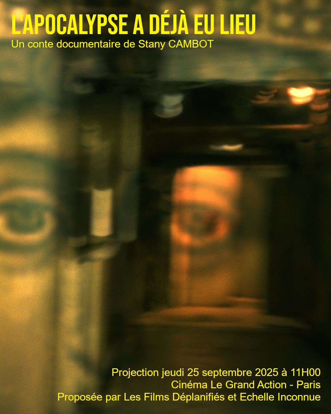 Depuis le mois d’août 2025, L’Apocalypse a déjà eu lieu a été présenté en sélection officielle dans plusieurs festivals et rendez-vous incontournables du documentaire. Quelques 1000 spectateur·ices l’ont découvert à Lussas, Paris, Le Mans, Genève, Clermont-Ferrand et Limoges.